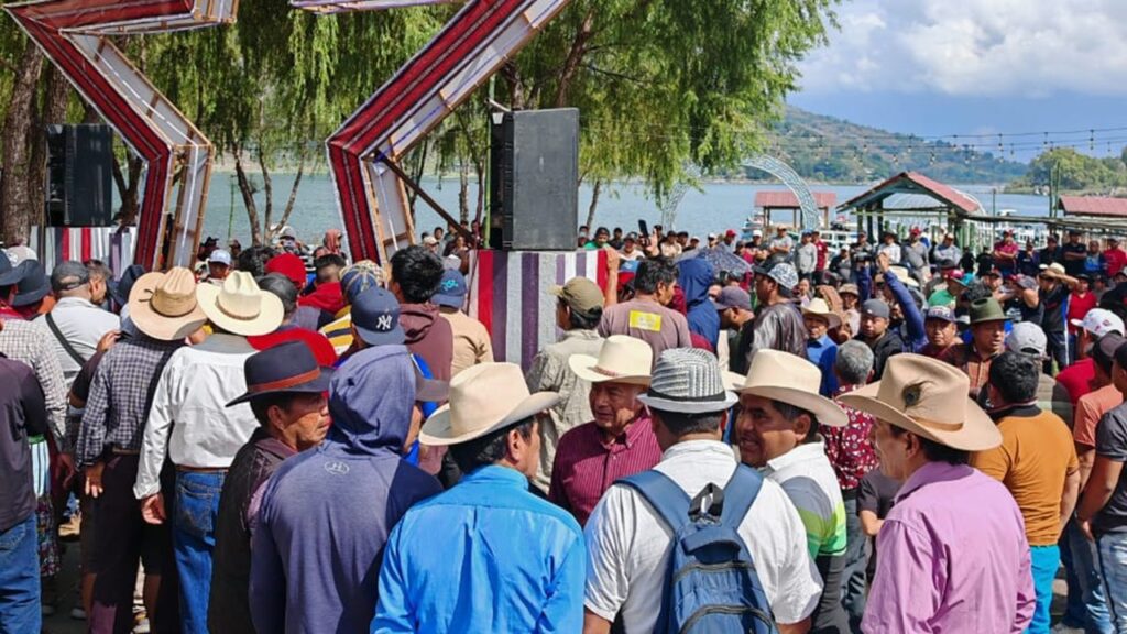 Integrantes del pueblo maya tz’utujil se oponen a la crianza intensiva de tilapia en el lago de Atitlán. Foto: PDH
