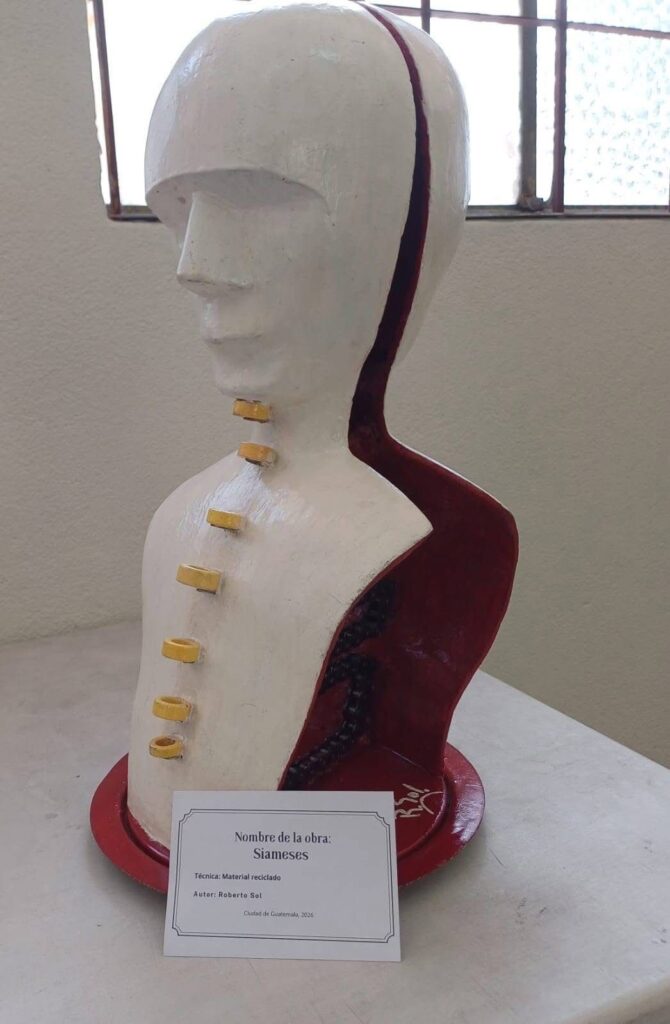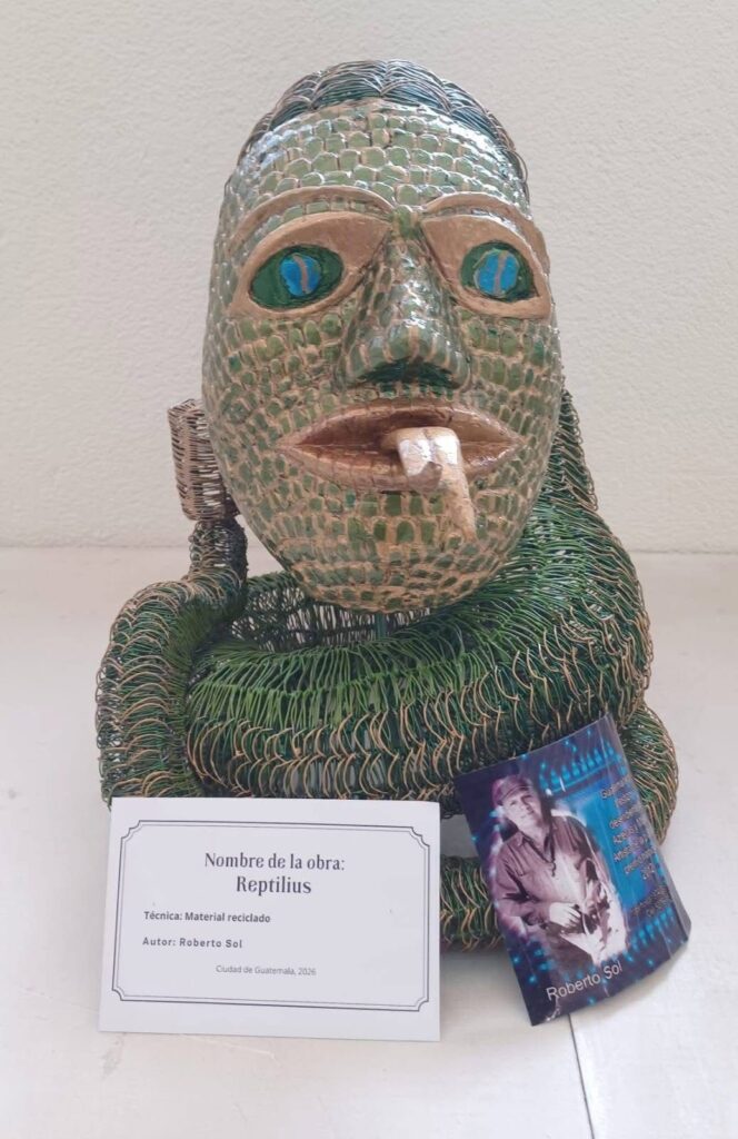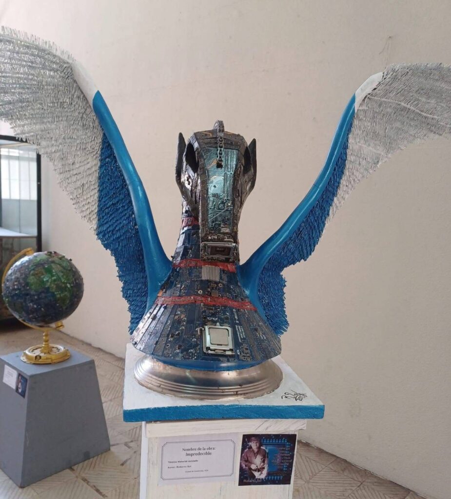 “El Retiniano”, “Siameses” “Miguel Ángel Asturias” y “El proyecto Geocomunicaciones” son otras de las obras de Sol, quien con ellas lanza un llamado de alerta sobre la importancia del mundo actual, y en esa línea reiteró el uso de material reciclado para fortalecer sus mensajes.