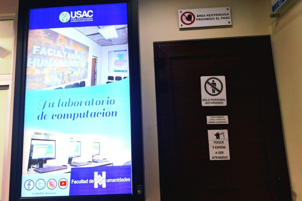 Según indicó el encargado del área tecnológica, licenciado Roberto Mazariegos, este año, se cuenta con 2 pantallas con tecnología avanzada para realizar consultas y trámites. Además, se adquirió equipo para renovar el laboratorio de cómputo en el edificio Bienestar Estudiantil, en un espacio que fue designado para la FAHUSAC.