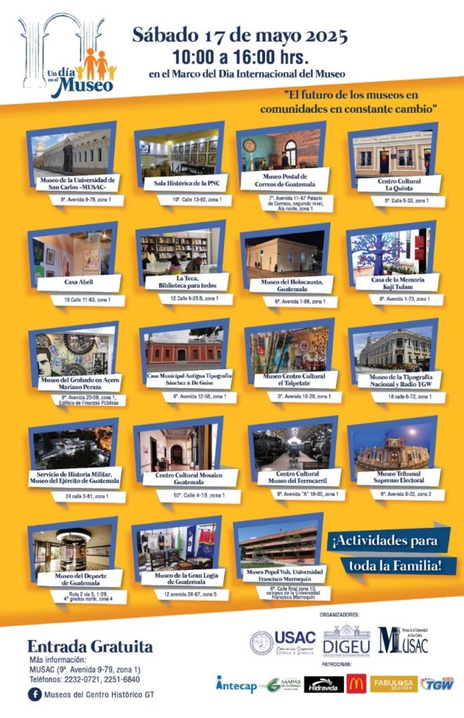 Hoy, el museo de la Carolina montará “Un Día en el Museo”, en horario de 10:00 a 16:00; la entrada es gratuita y se llevarán a cabo dinámicas para toda la familia. Para la niñez habrá pinta caritas y números lúdicos, y para las personas adultas, recorridos guiados por expertos en las diferentes salas. También se contará con la participación de scouts que compartirán sus experiencias, un ensamble de marimba y ventas de platillos típicos.